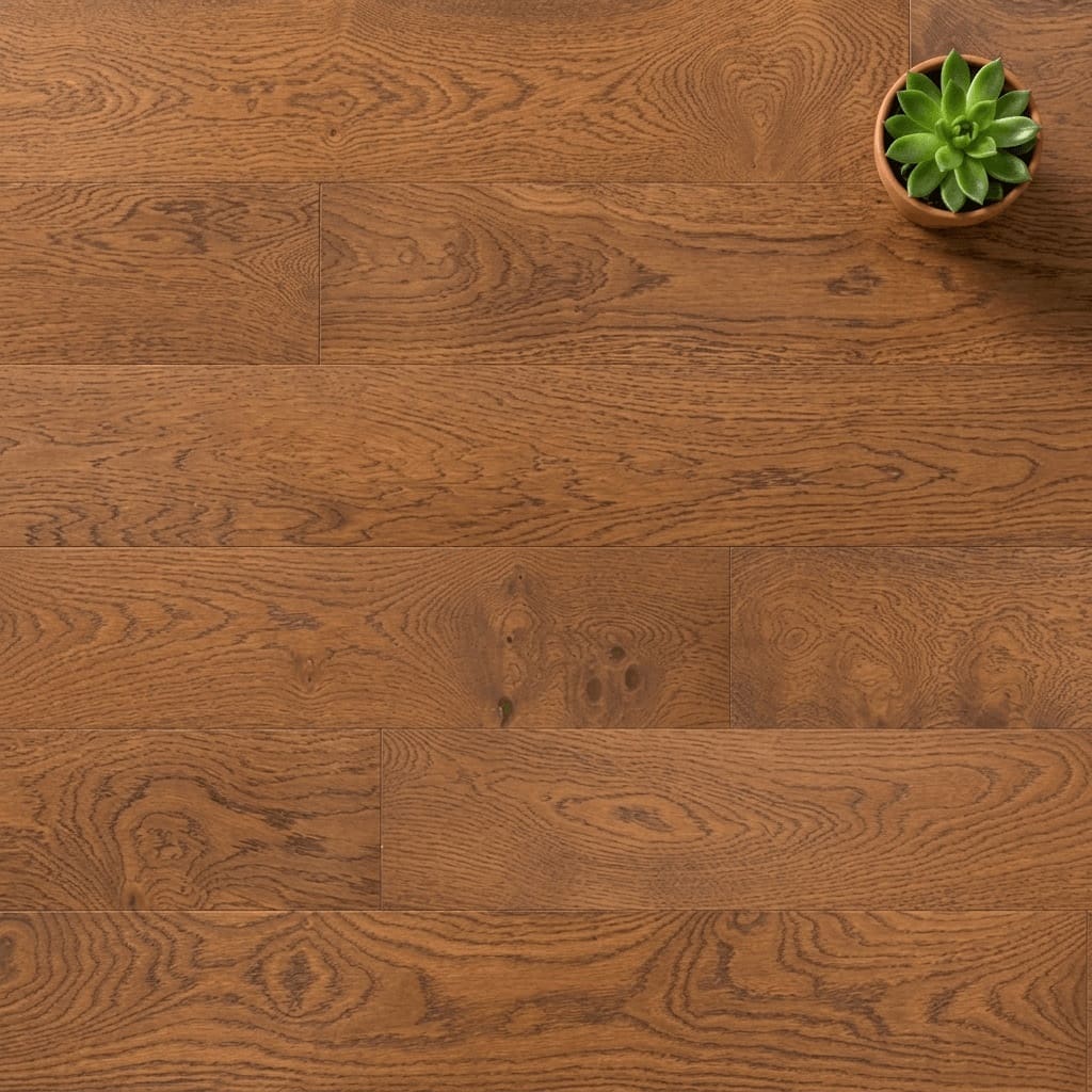 Aldford Oak is a sophisticated choice for those seeking the natural beauty of real timber combined with modern engineering. This brushed oiled oak engineered wood flooring features a rustic grade that showcases the authentic knots and grain patterns inherent in natural oak. The 14mm thickness provides a solid feel underfoot, while the 3mm wear layer ensures durability for years to come.