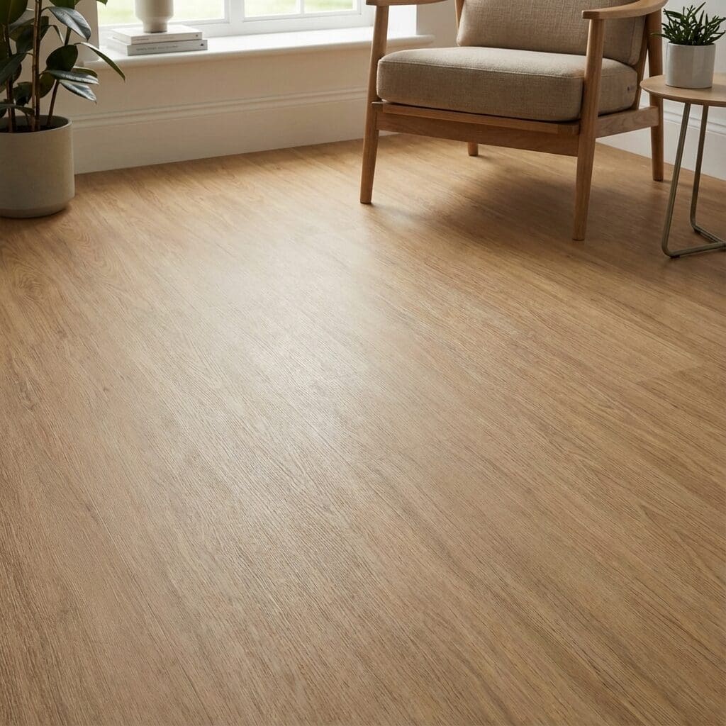 Beautiful soft oak wood effect LVT plank flooring, adding natural warmth and elegance to any room, from contemporary to traditional.