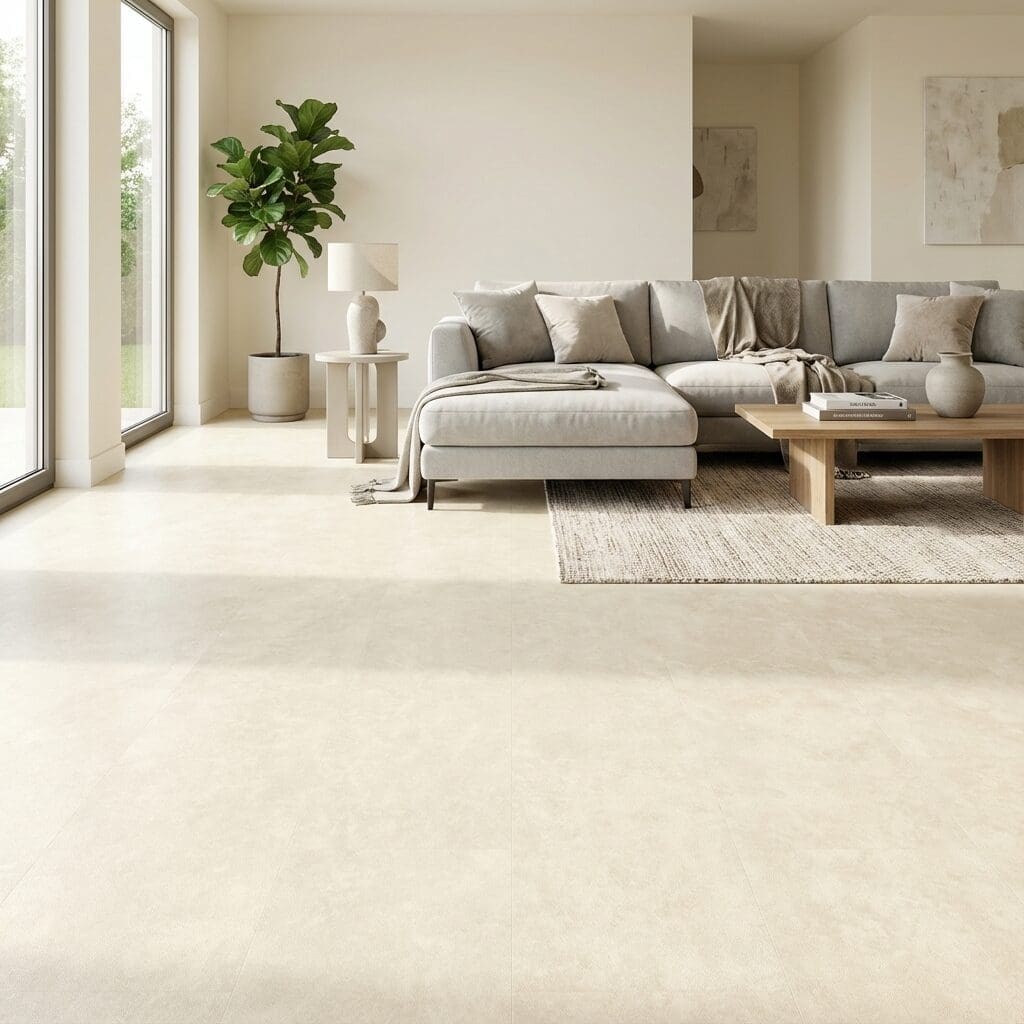 Amtico First Dew Stone SF3S4437 brings sophisticated elegance to any space with its versatile subtle cream tones. This premium luxury vinyl flooring features gentle movement and natural variations that authentically replicate the look of natural stone.