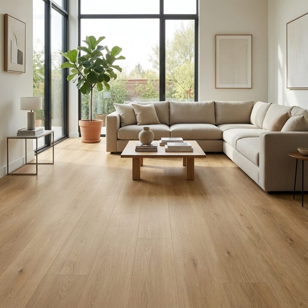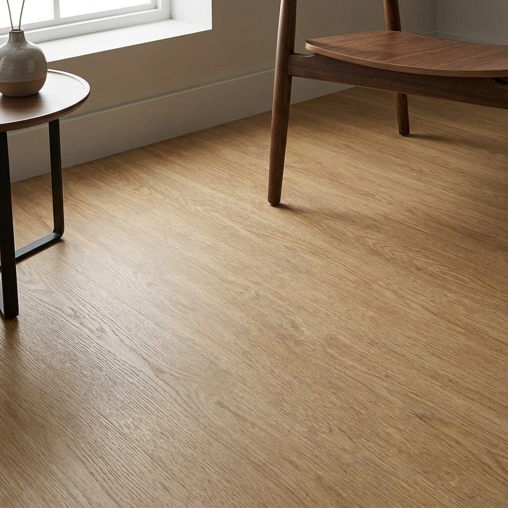 Authentic Oak Appearance: Features a realistic timber effect with delicate grain details and a warm, natural hue, providing the charm of wood effect LVT.