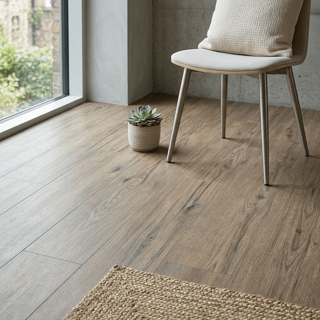 The Amtico Spacia Cabin Timber offers versatile design possibilities, from traditional plank layouts to contemporary herringbone patterns. Its realistic grain patterns and natural colour variations ensure each installation is unique. Manufactured using phthalate-free plasticisers and backed by a comprehensive 25-year warranty, this flooring combines style with long-lasting performance for both residential and commercial applications.