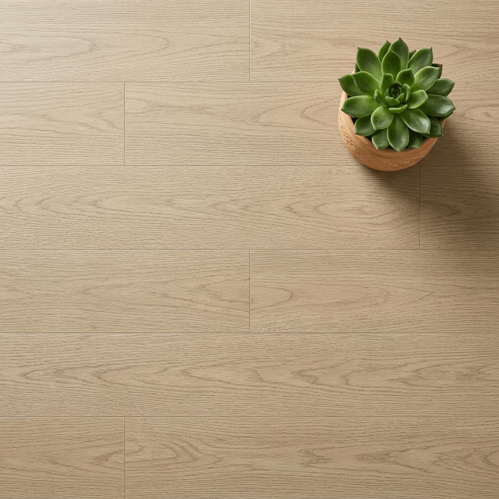- Luxury vinyl flooring with authentic light golden oak appearance featuring open grain and natural knot details