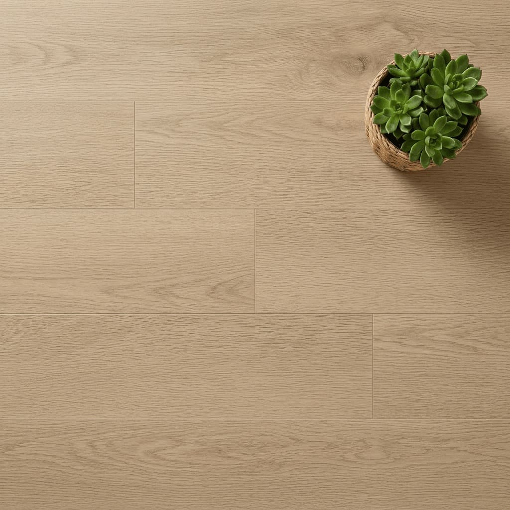 - Luxury vinyl flooring with authentic oak appearance featuring light tones and natural knot details