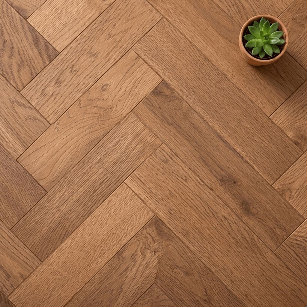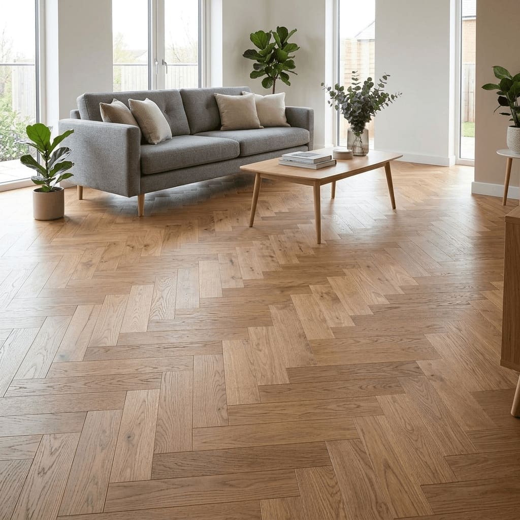 Bickerton Oak Herringbone is a premium flooring solution that combines the natural beauty of select grade oak with the structural stability of engineered wood. This exquisite flooring features a 14mm total thickness, including a substantial 3mm wear layer, ensuring it can withstand the demands of a busy household while maintaining its stunning appearance.
