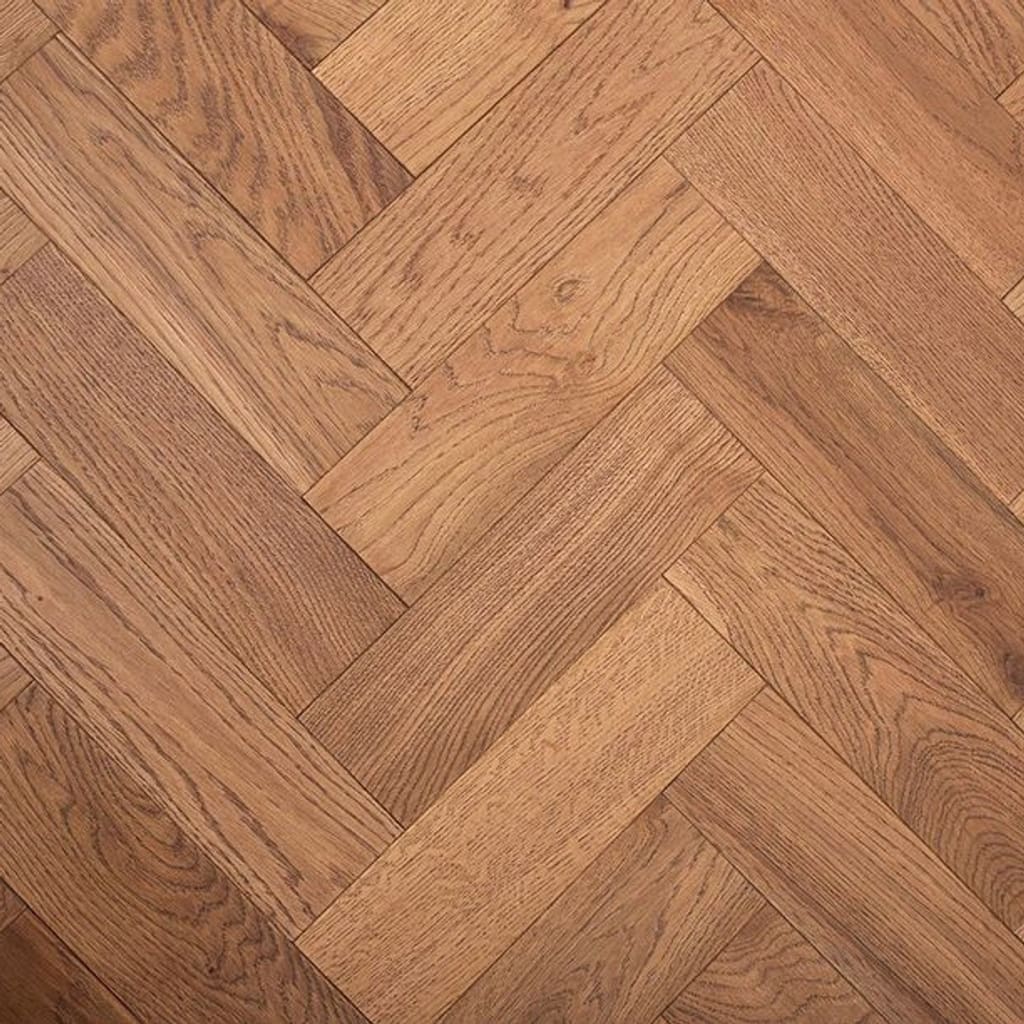 The brushed and handscraped surface of the Bickerton Oak Herringbone provides a tactile experience that celebrates the unique character of the wood. Finished with a high-quality antique lacquer, each 90 x 300mm parquet block is protected against daily wear, making it an ideal choice for living rooms, hallways, and dining areas.