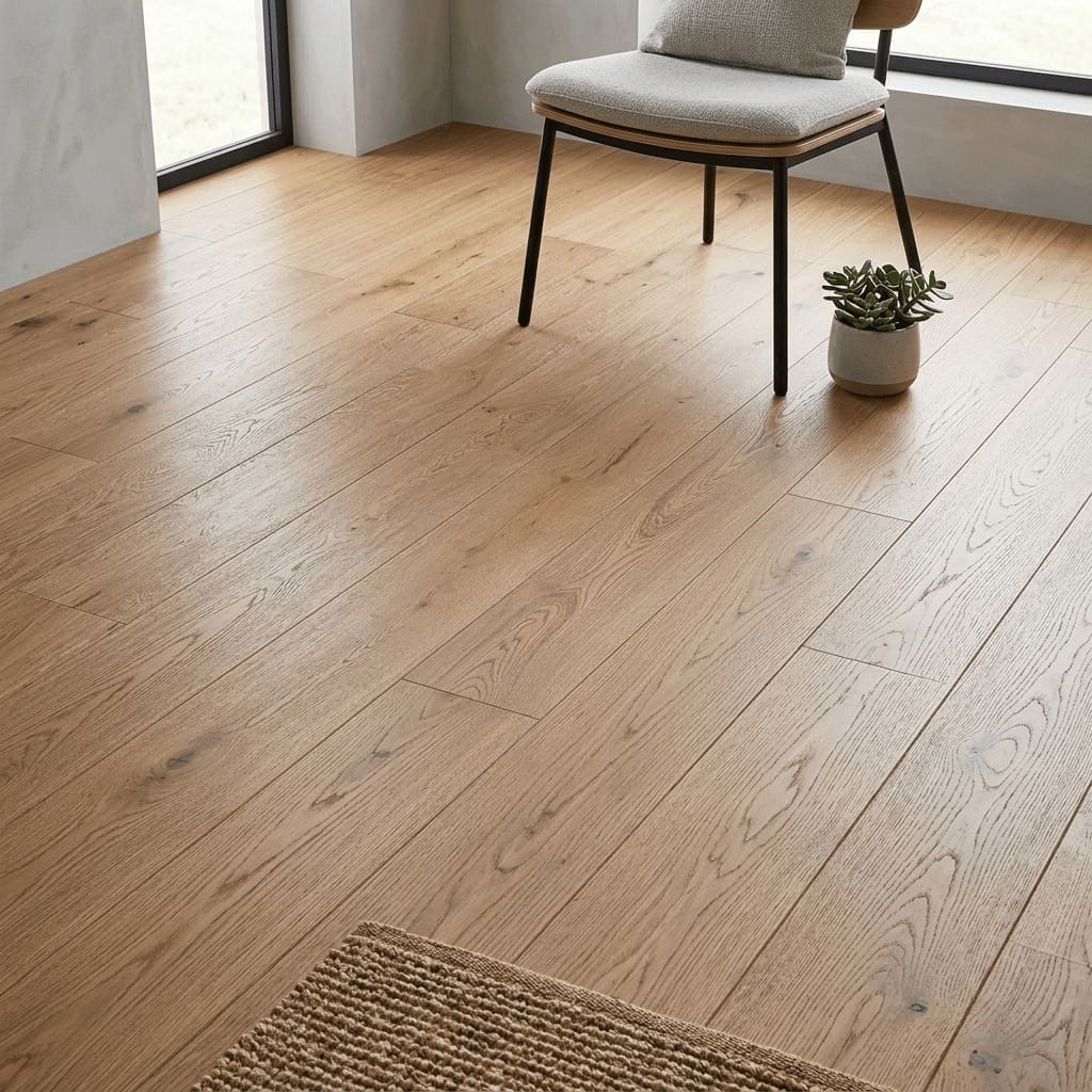 - Premium engineered wood construction with a 3mm solid oak wear layer for long-lasting performance.
