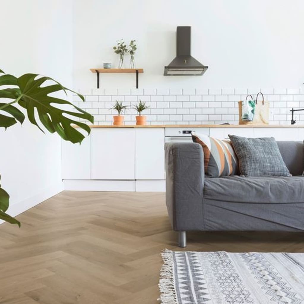 One Flor Workshop 55 Prestige Oak Light Amber Herringbone