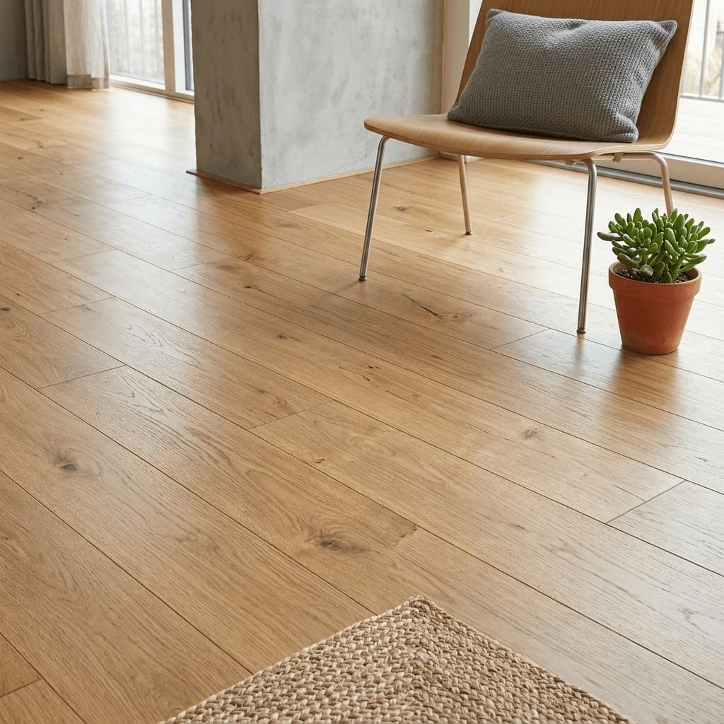 - Premium engineered wood construction featuring a 3mm solid oak wear layer for long-lasting performance.