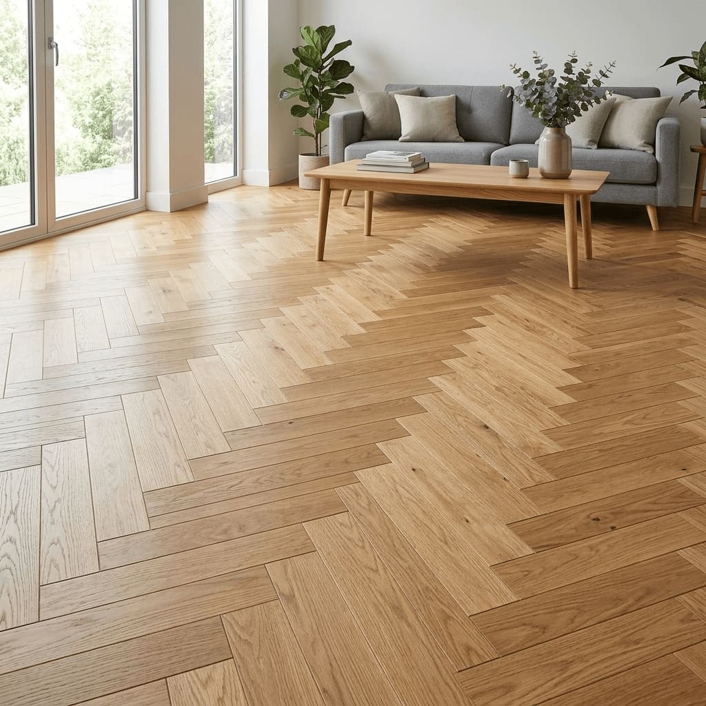 Tabley Oak Herringbone is a premium flooring solution that combines the timeless appeal of parquet with modern engineering. This golden brushed oiled oak herringbone engineered wood flooring is designed to bring warmth and character to your home, showcasing the natural beauty of select grade oak with its refined grain and subtle textures.