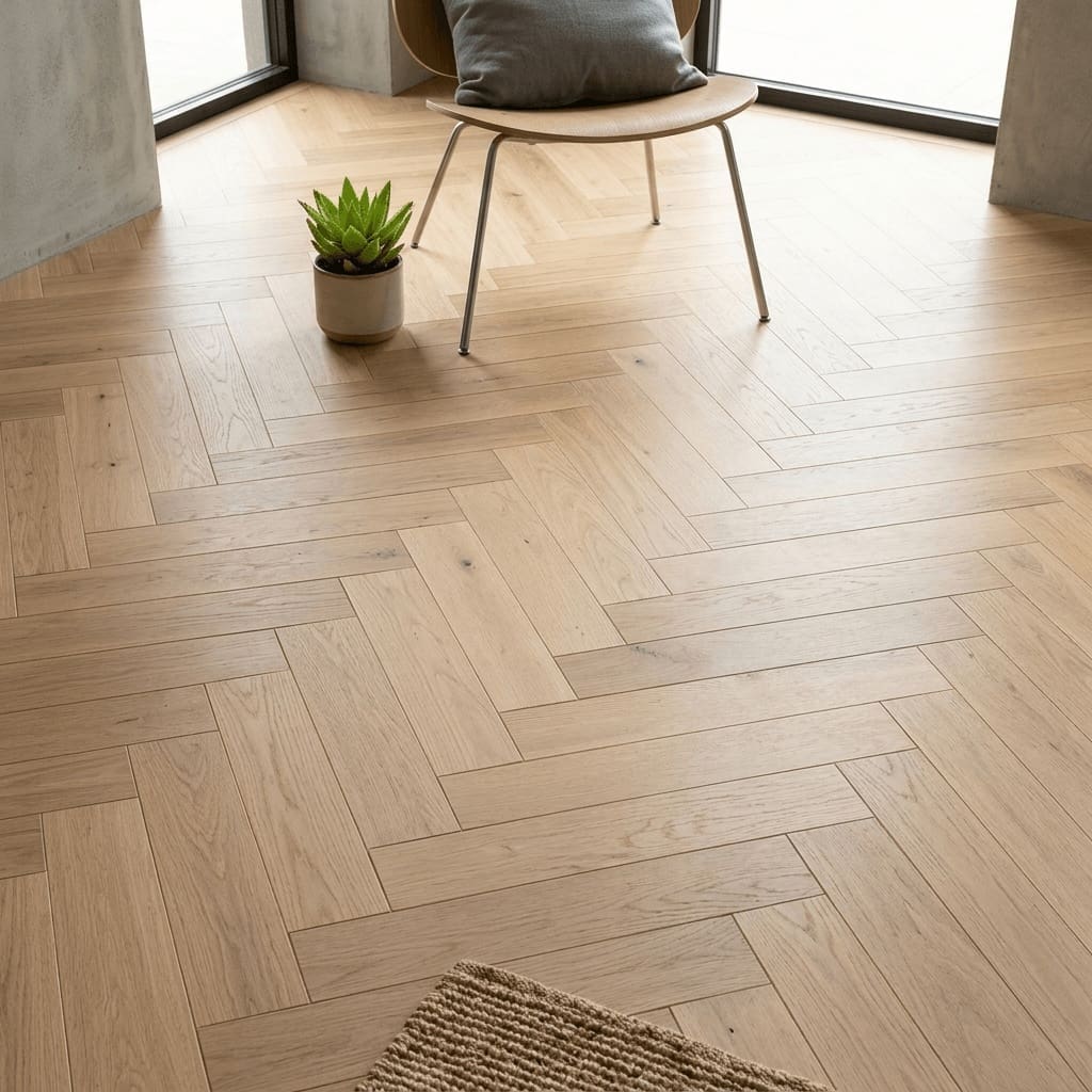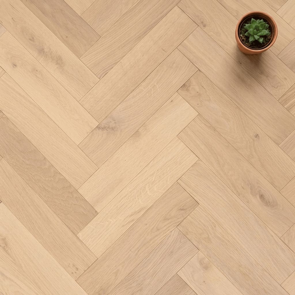 The GF Engineered Wood Herringbone Tarporley Oak is fully compatible with underfloor heating, combining traditional parquet aesthetics with contemporary comfort. Its smooth surface and light oak tones create an airy, spacious feel, perfectly suited for living rooms, hallways, or dining areas where quality and detail are paramount.